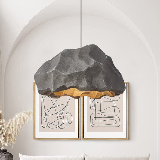 Nordic Stone Rock Pendant Light – Minimalist Black Hanging Light with Adjustable Cable for Kitchen and Home Décor